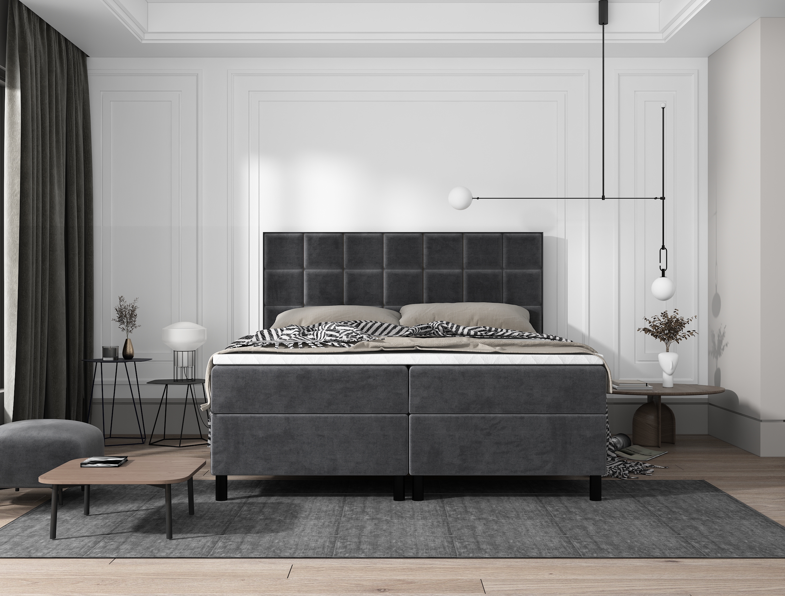 - łóżko wykonane w tkaninie MATT VELVET 85 – JASNO SZARY