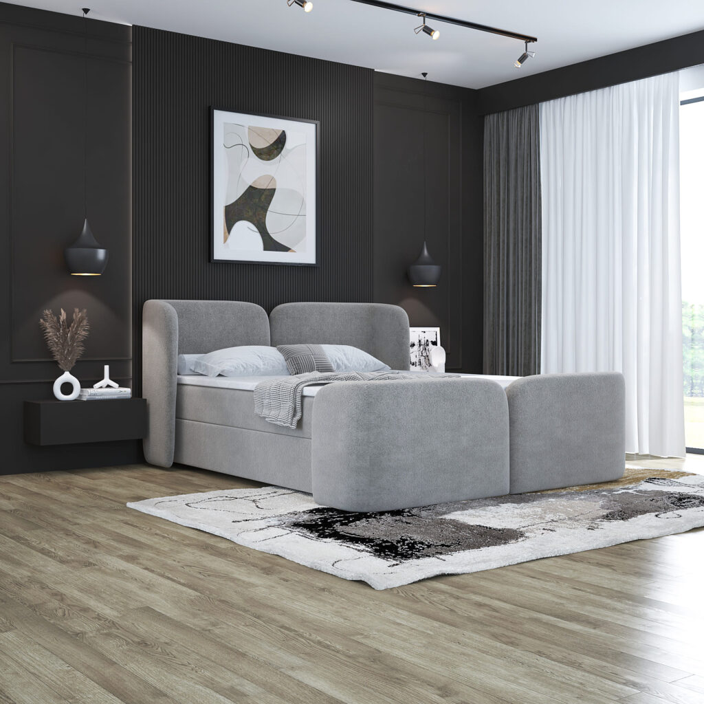 Łóżko Kontynentalne RIVA Boucle – Nowoczesna Elegancja w Każdym Detalu